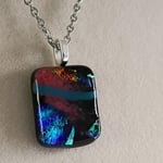 Hand Crafted Dichroic Fused Glass Pendant Necklace W/ Chain #1249