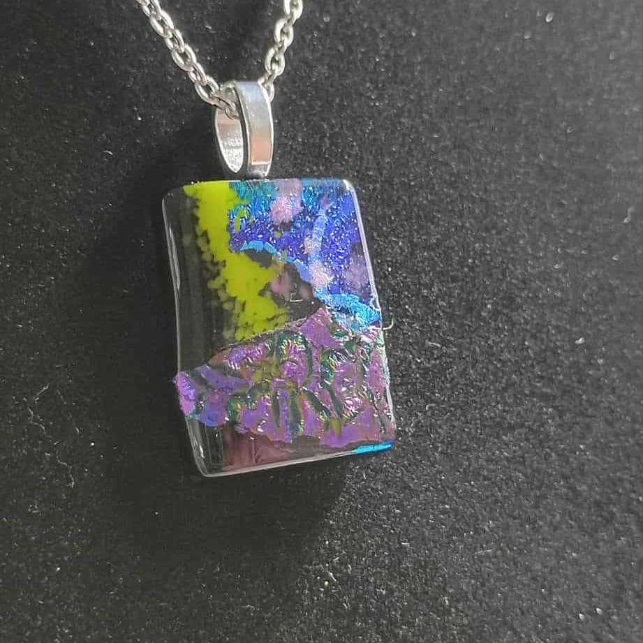 Hand Crafted Dichroic Fused Glass Pendant Necklace W/ Chain #1673