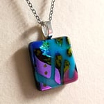 Hand Crafted Dichroic Fused Glass Pendant Necklace W/ Chain #1675