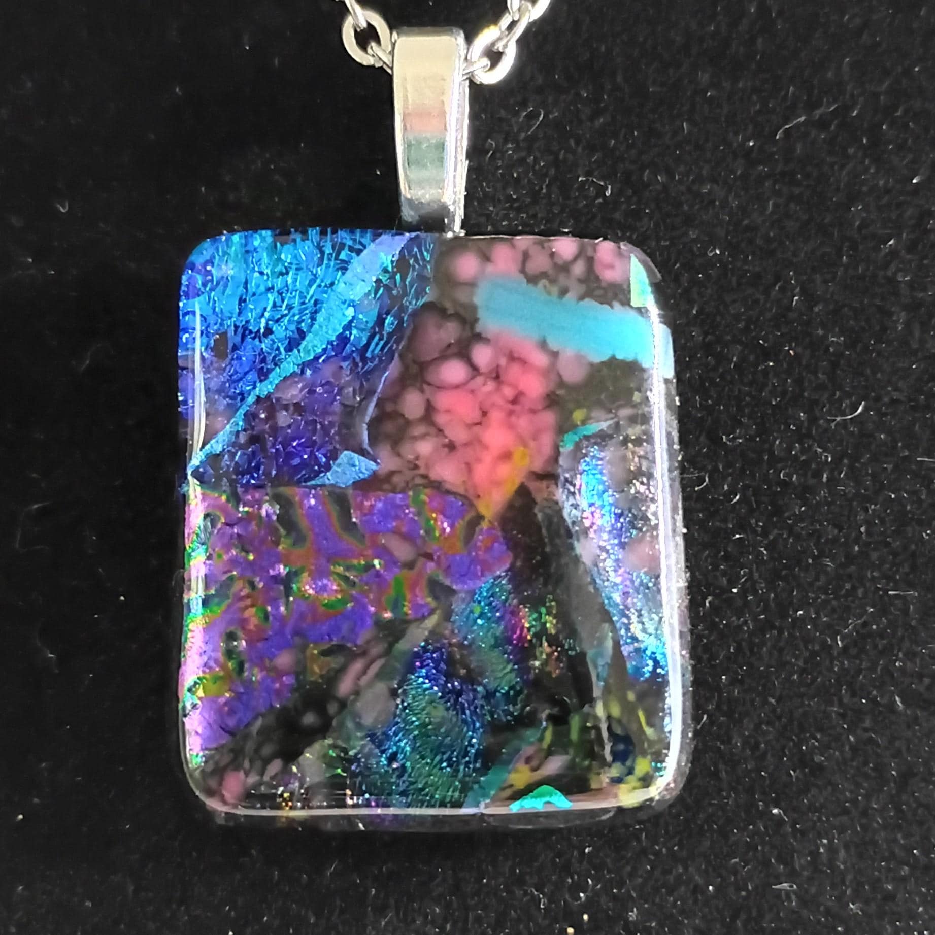Hand Crafted Dichroic Fused Glass Pendant Necklace W/ Chain #1687
