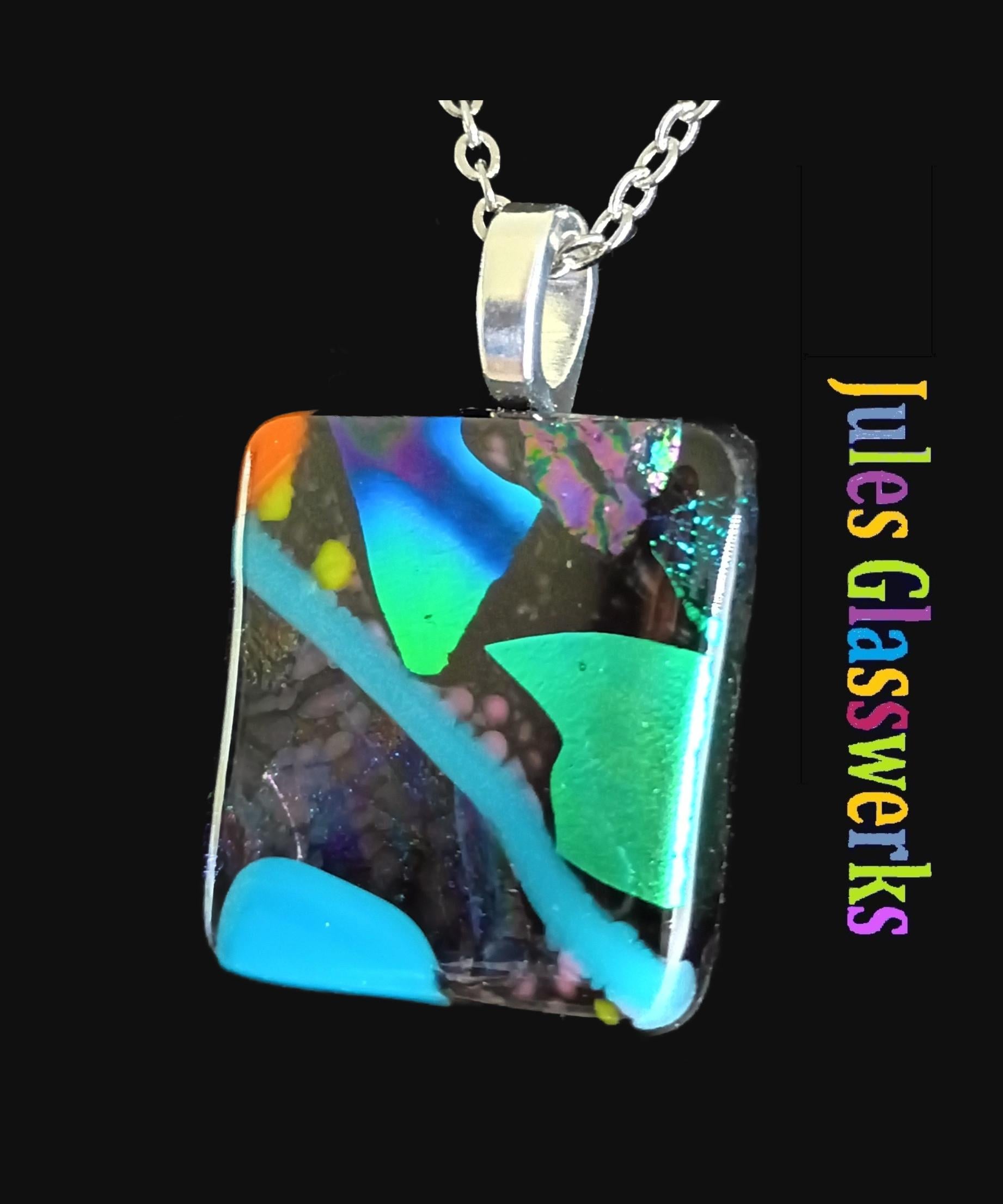 Hand Crafted Dichroic Fused Glass Pendant Necklace W/ Chain #1699