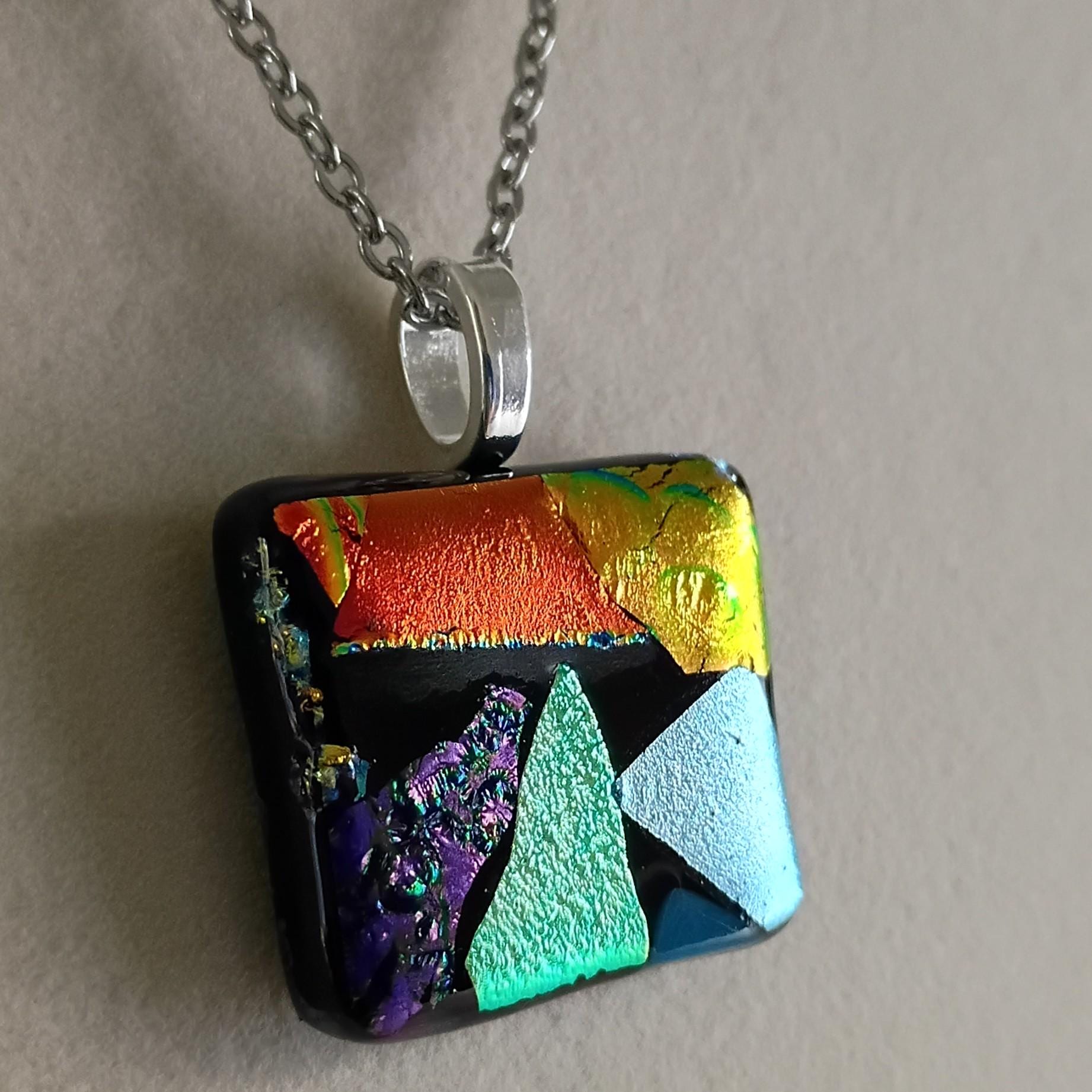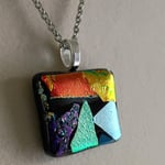 Hand Crafted Dichroic Fused Glass Pendant Necklace W/ Chain #1703