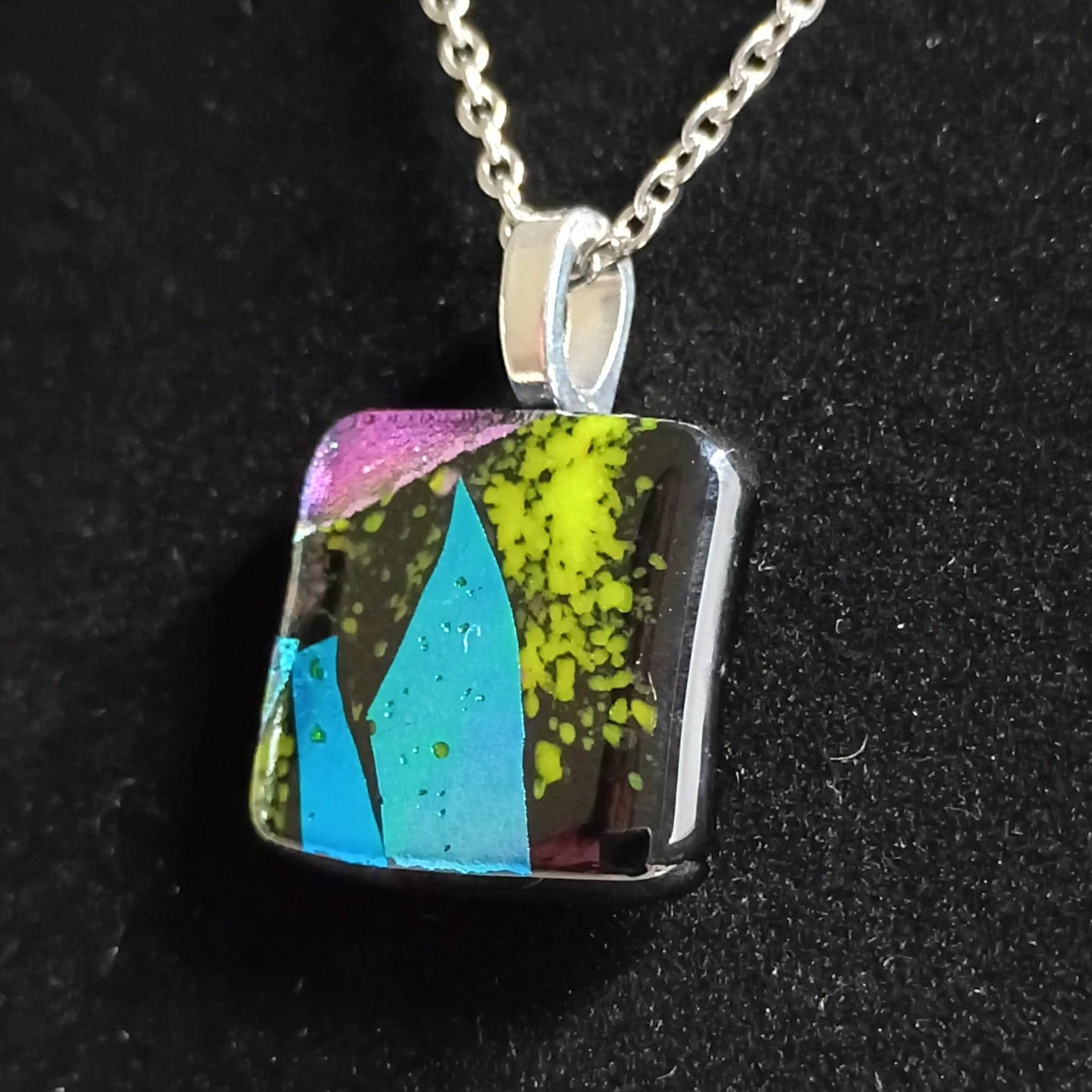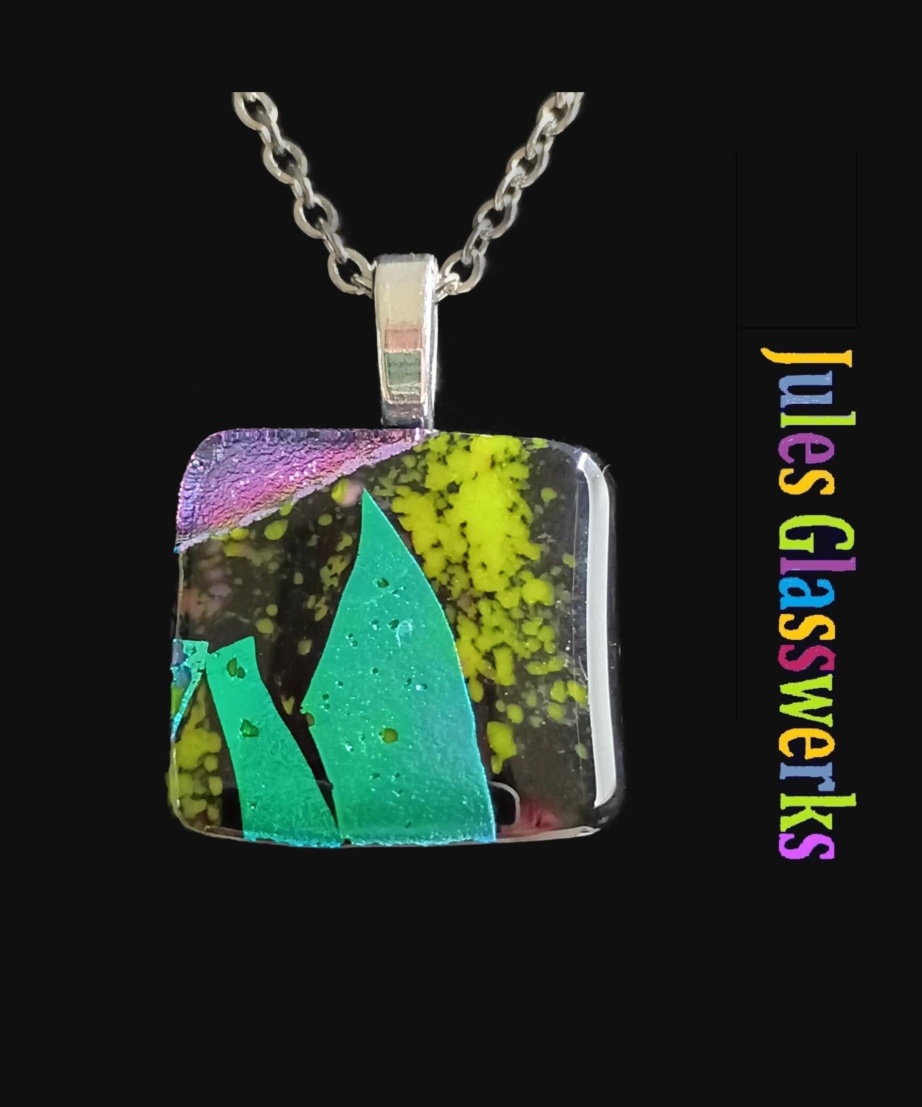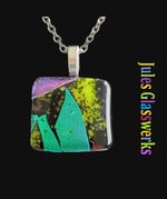 Hand Crafted Dichroic Fused Glass Pendant Necklace W/ Chain #1712