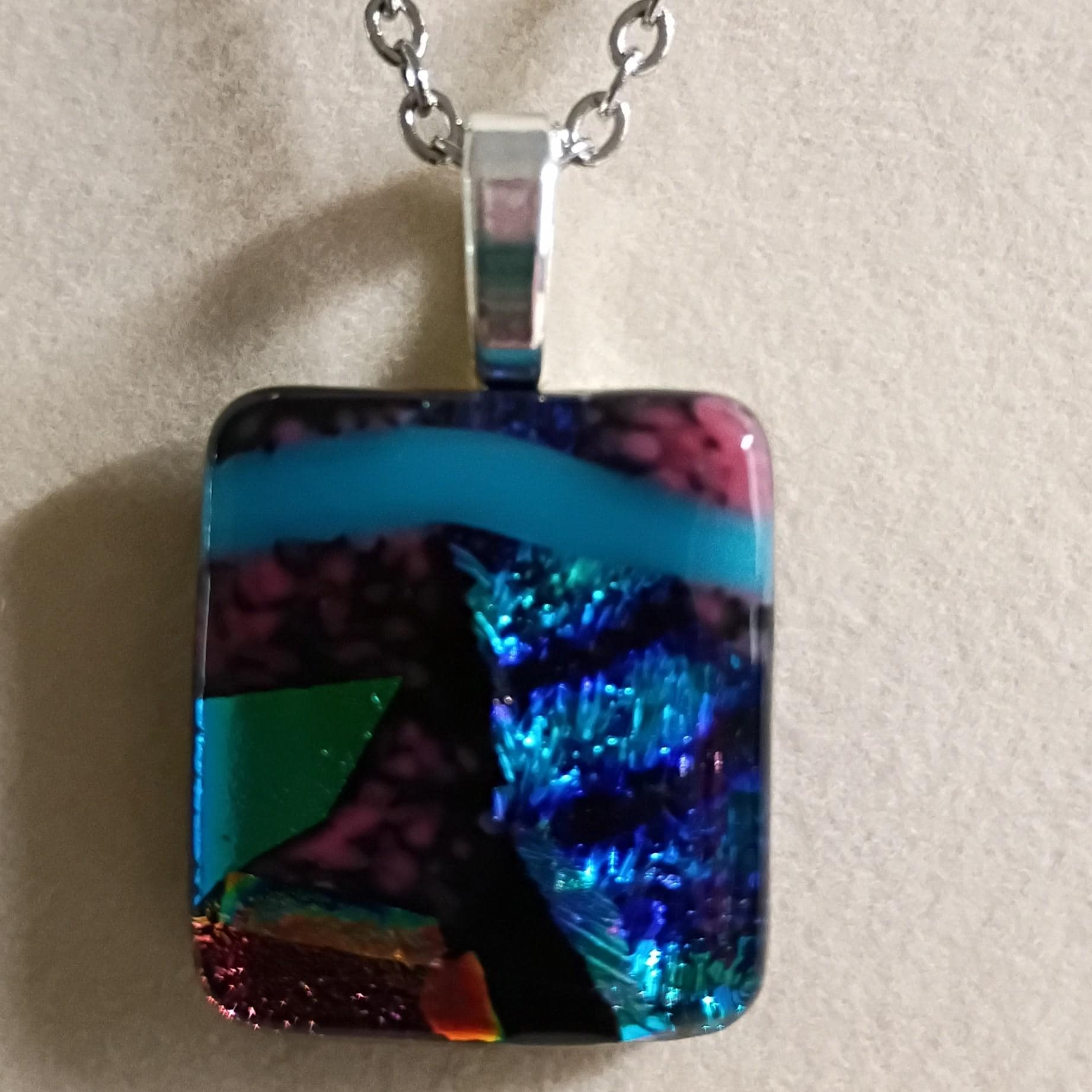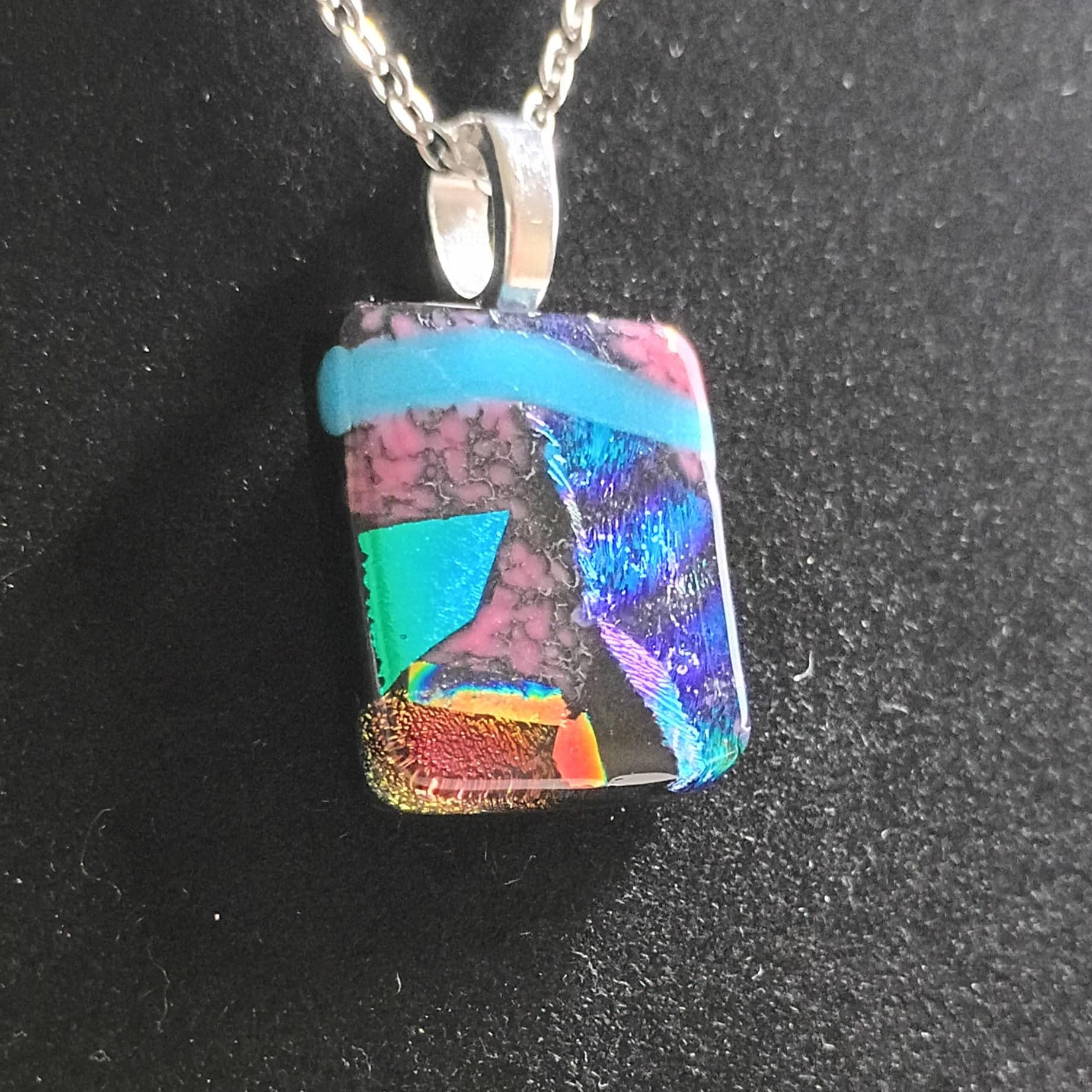 Hand Crafted Dichroic Fused Glass Pendant Necklace W/ Chain #1721