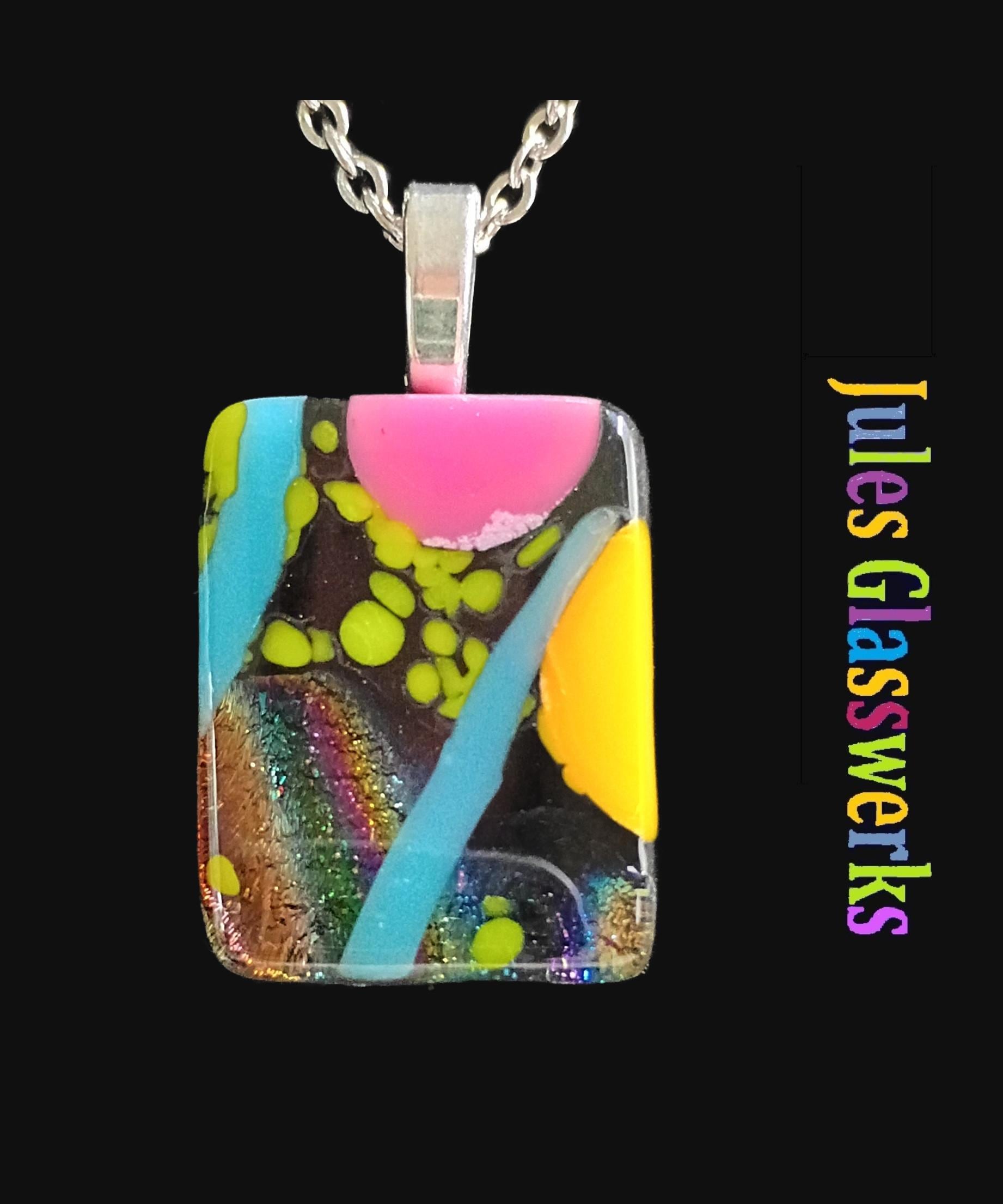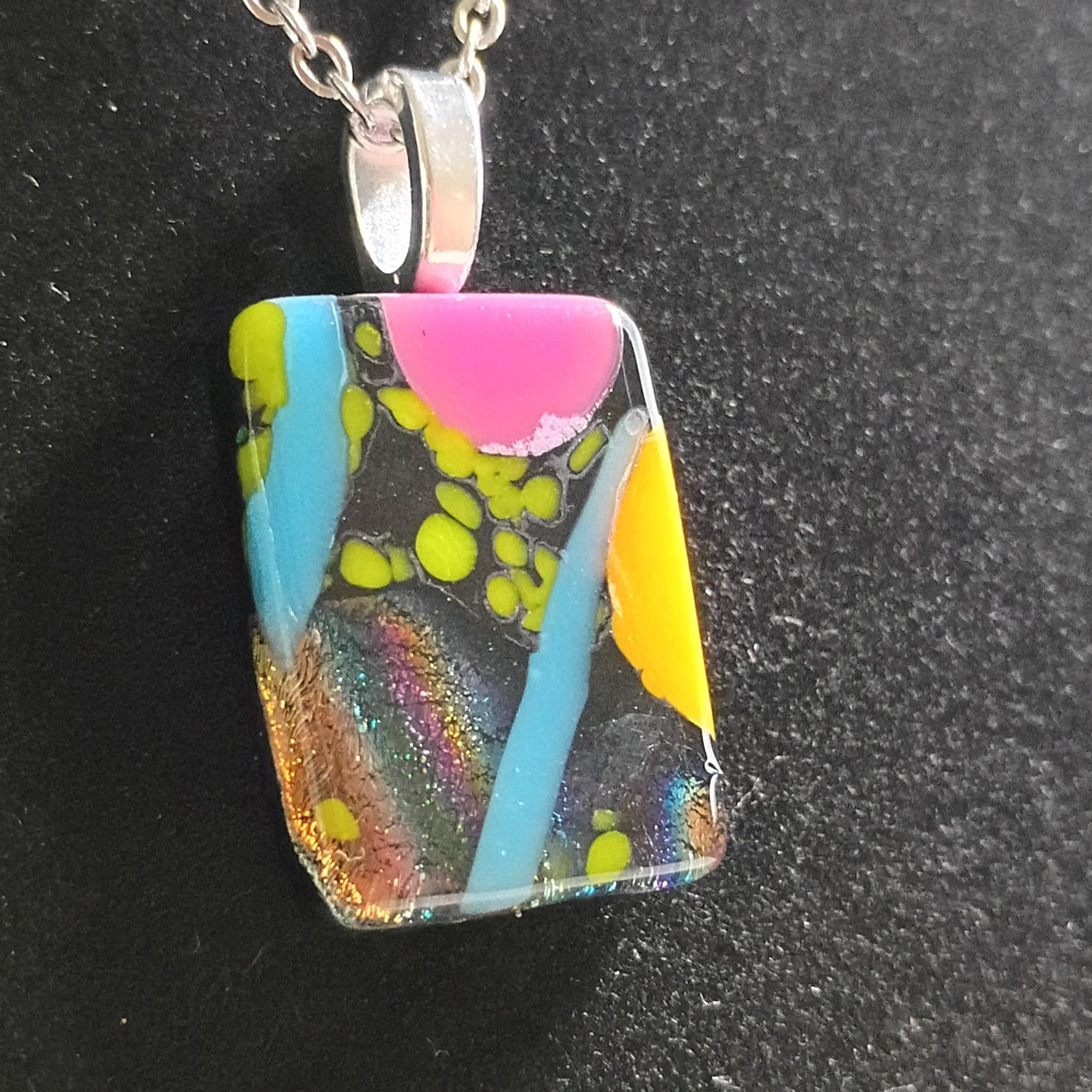 Hand Crafted Dichroic Fused Glass Pendant Necklace W/ Chain #1731